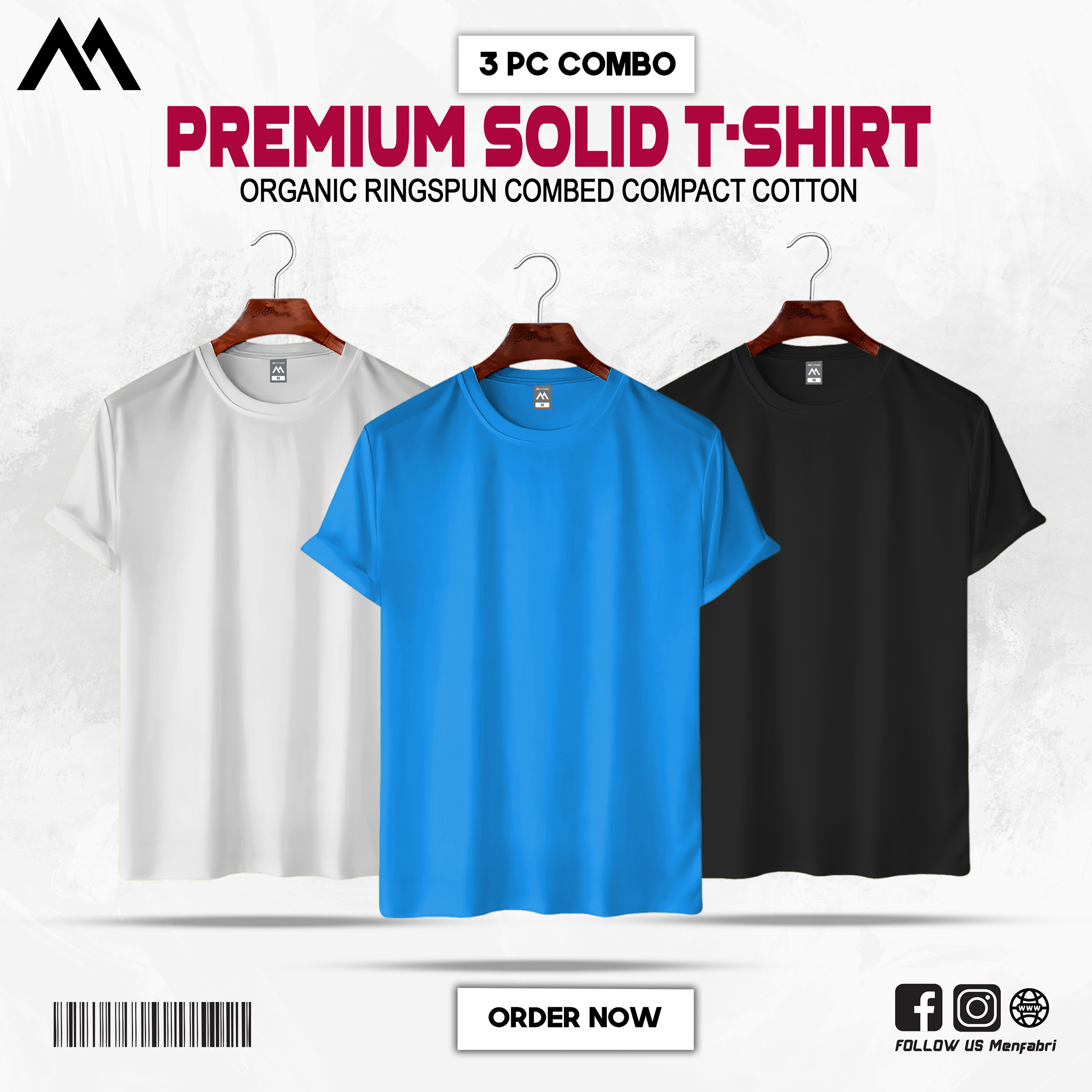 Mens Premium Solid T-Shirt Combo White, Vivid Blue, Black